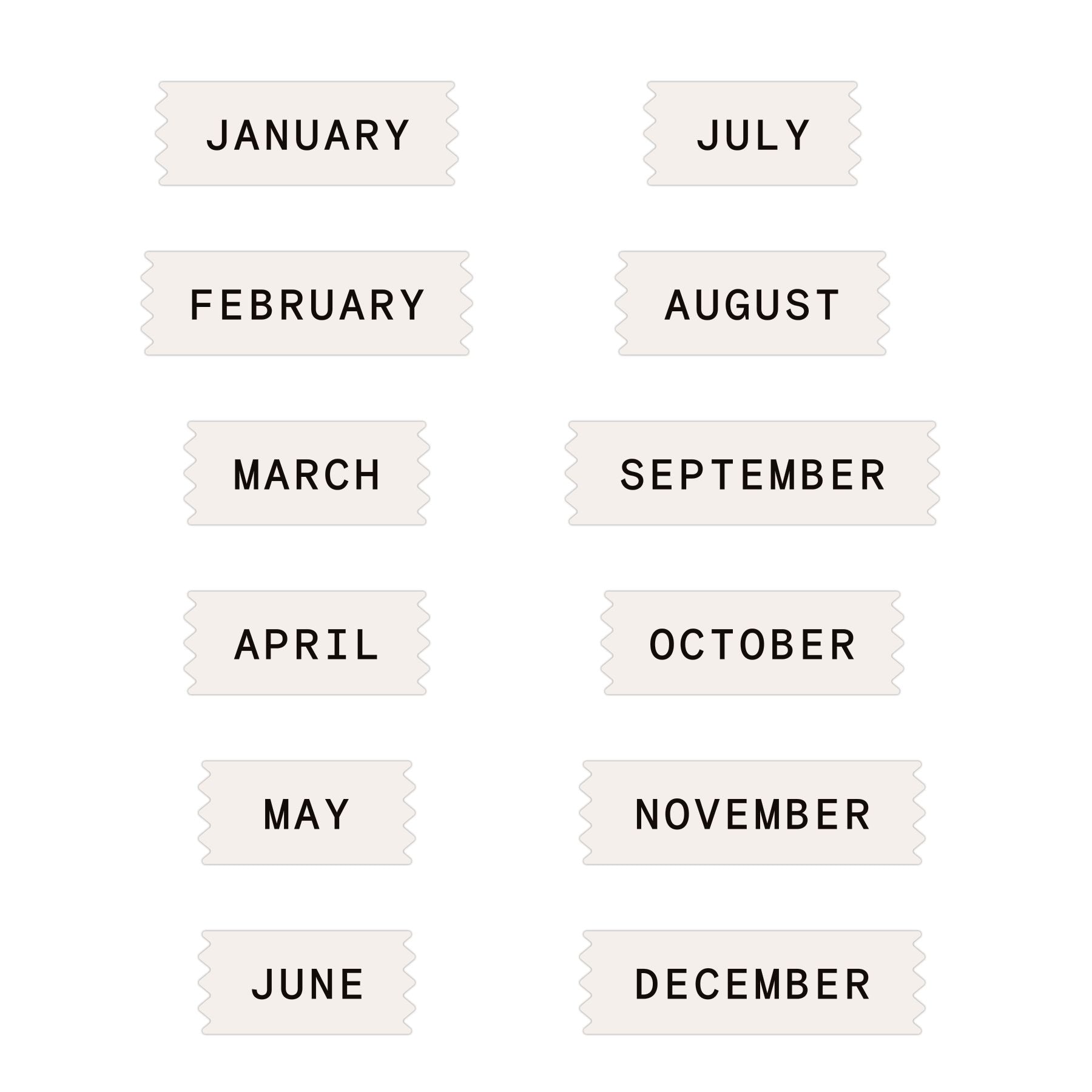 各月ごとに使える、シンプルで上品なタイトルを12枚収録。