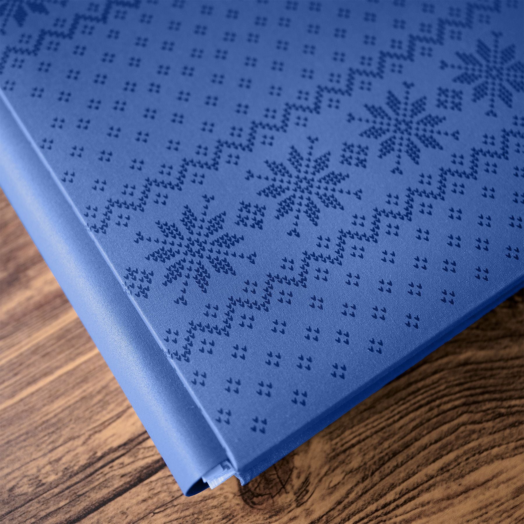 北欧ニットを思わせるネイビーのマットフォイルのスノーフレーク柄が映える、