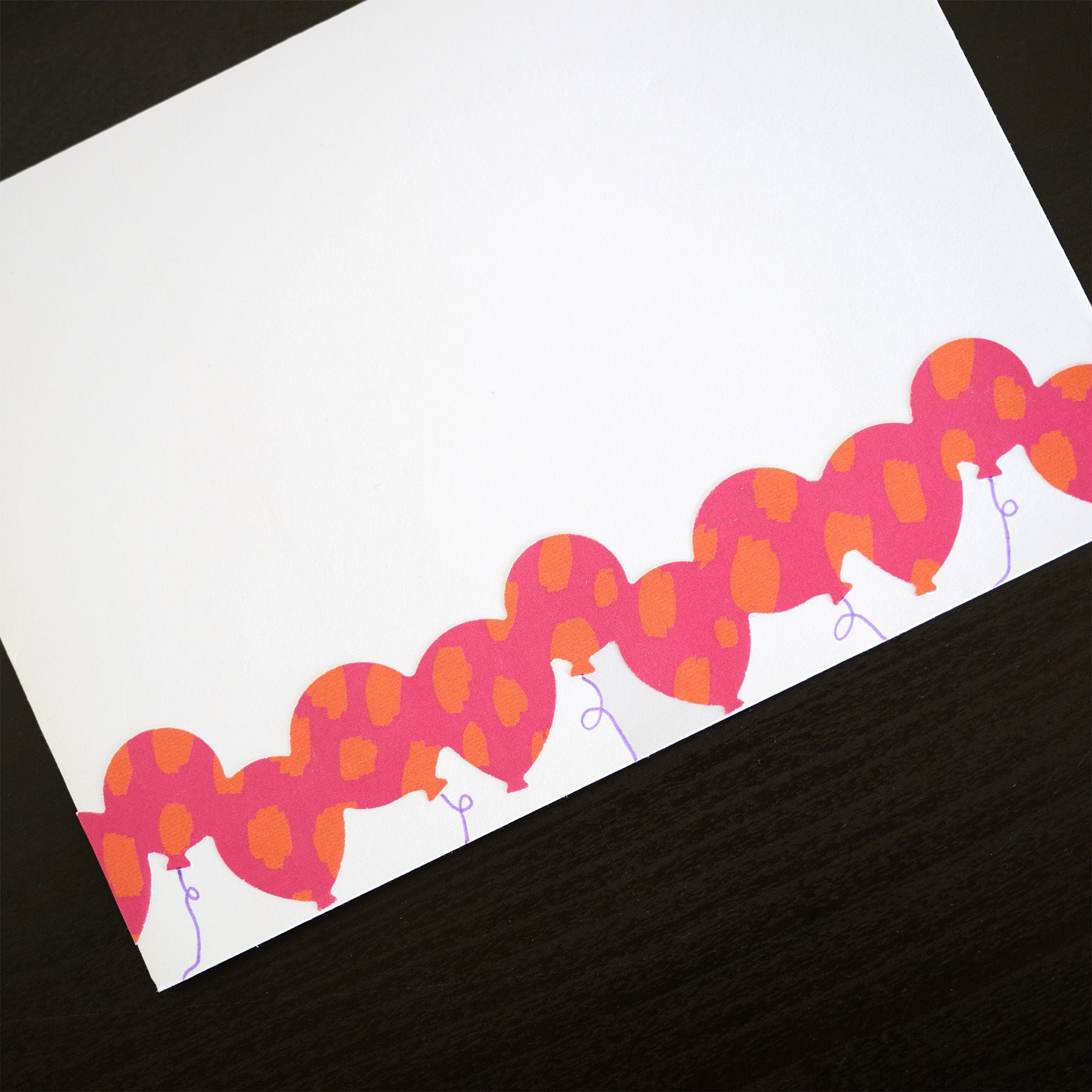 高さの異なる風船が並ぶ、遊び心あふれるボーダーデザイン。